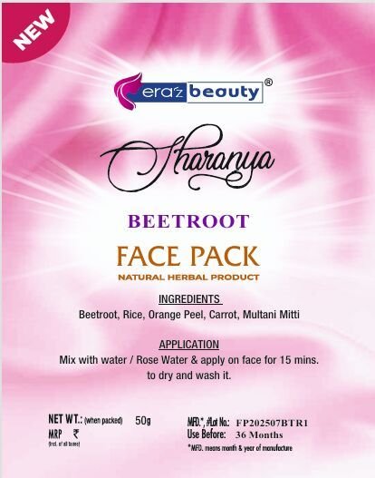 | Ingreadient | Beetroot + Rice+ Orangepeel+ Carrot+ Multani |